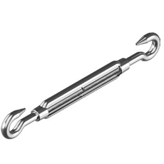 Талреп открытый d11 тип B DIN 1480 сталь А4 крюк-крюк – механическое приспособление, предназначенное для регулирования силы натяжения такелажных элементов. Изделие состоит из двух винтов с противоположным направлением резьбы, которые соединены муфтой. Приведя талреп в движение, вращая центральную муфту, рабочий заставляет перемещаться винты к центру приспособления или наружу, тем самым соответственно создавая или ослабляя натяжение.